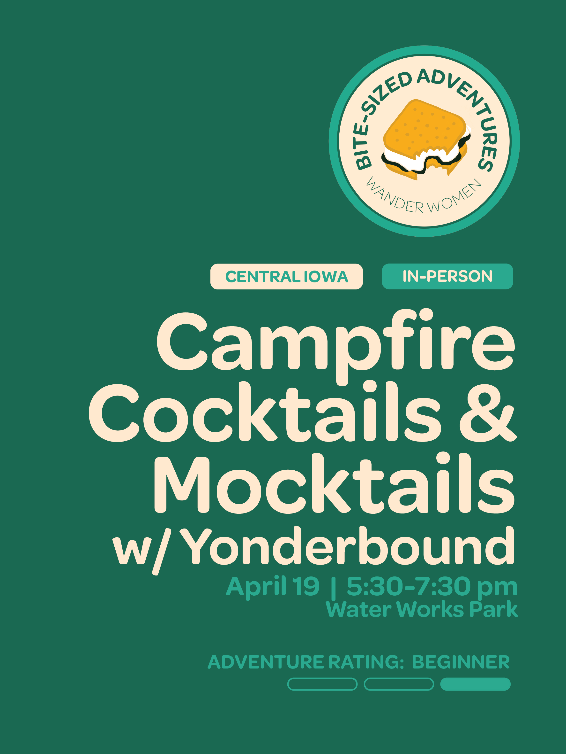 We’re celebrating spring and an early 4/20 around the campfire at Water Works Park in Des Moines with our friends from Yonderbound! Join us for a night of deliciously crafted cocktails, mocktails and THC-infused drinks! Yonderbound is a local-to-DSM company that makes travel-sized, low-dose, unflavored THC + CBD powder designed to quickly dissolve into any drink.